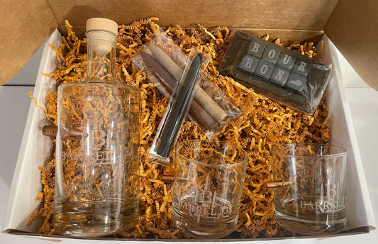 Premium Bourbon Gift Box: Aging Staves, Rocks Glasses, & Your Choice of Whiskey Accessory!
